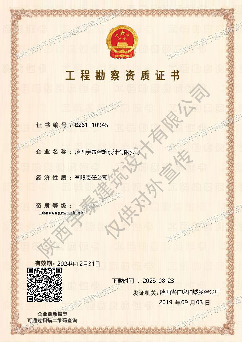 • 工程勘察資質(zhì)證書